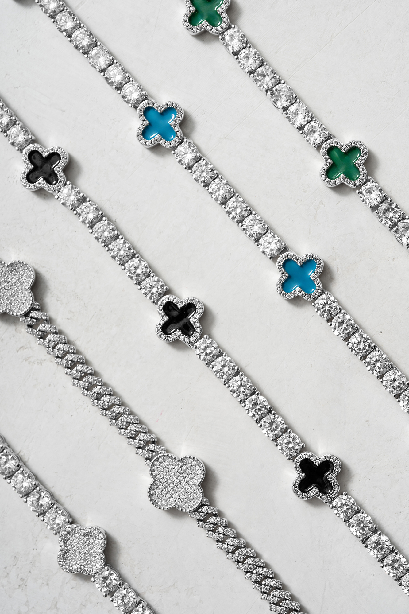 This collection showcases a series of high-end jewelry still life photographs created for 6ixice. The visuals highlight the brand’s signature aesthetic—bold, luxurious, and sharply detailed. Each image was crafted with a focus on color harmony, gemstone clarity, light control, and precise composition to emphasize the premium look of the pieces.