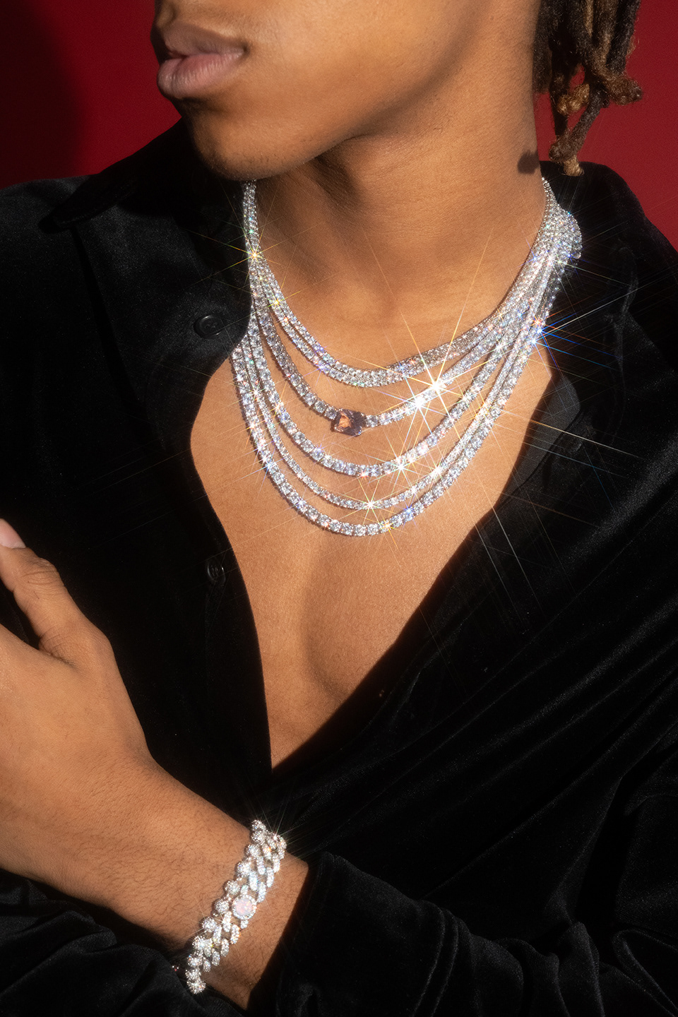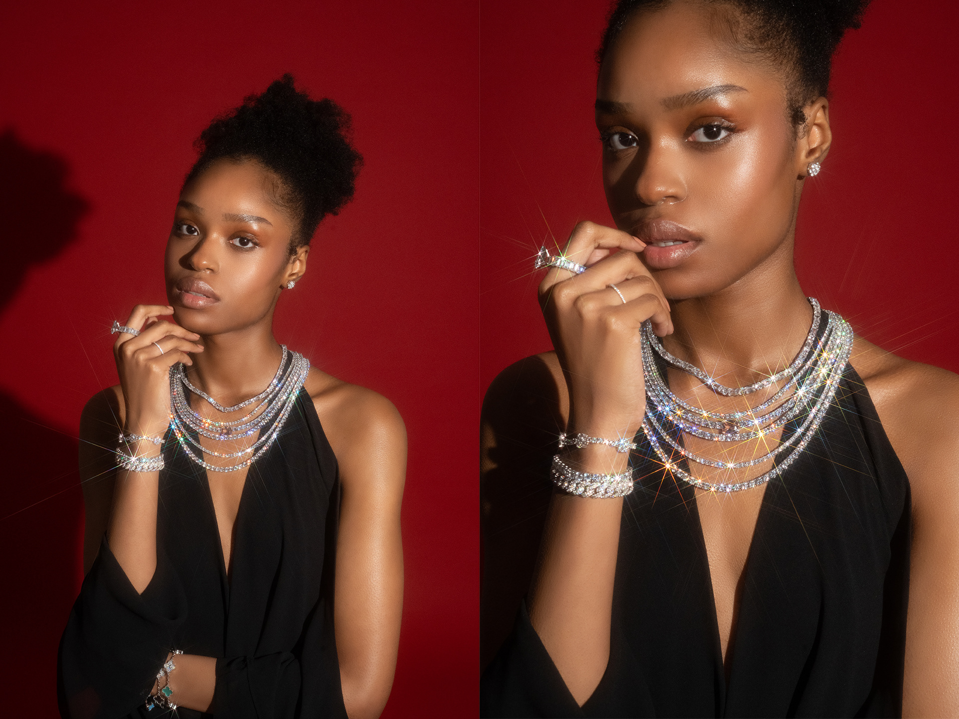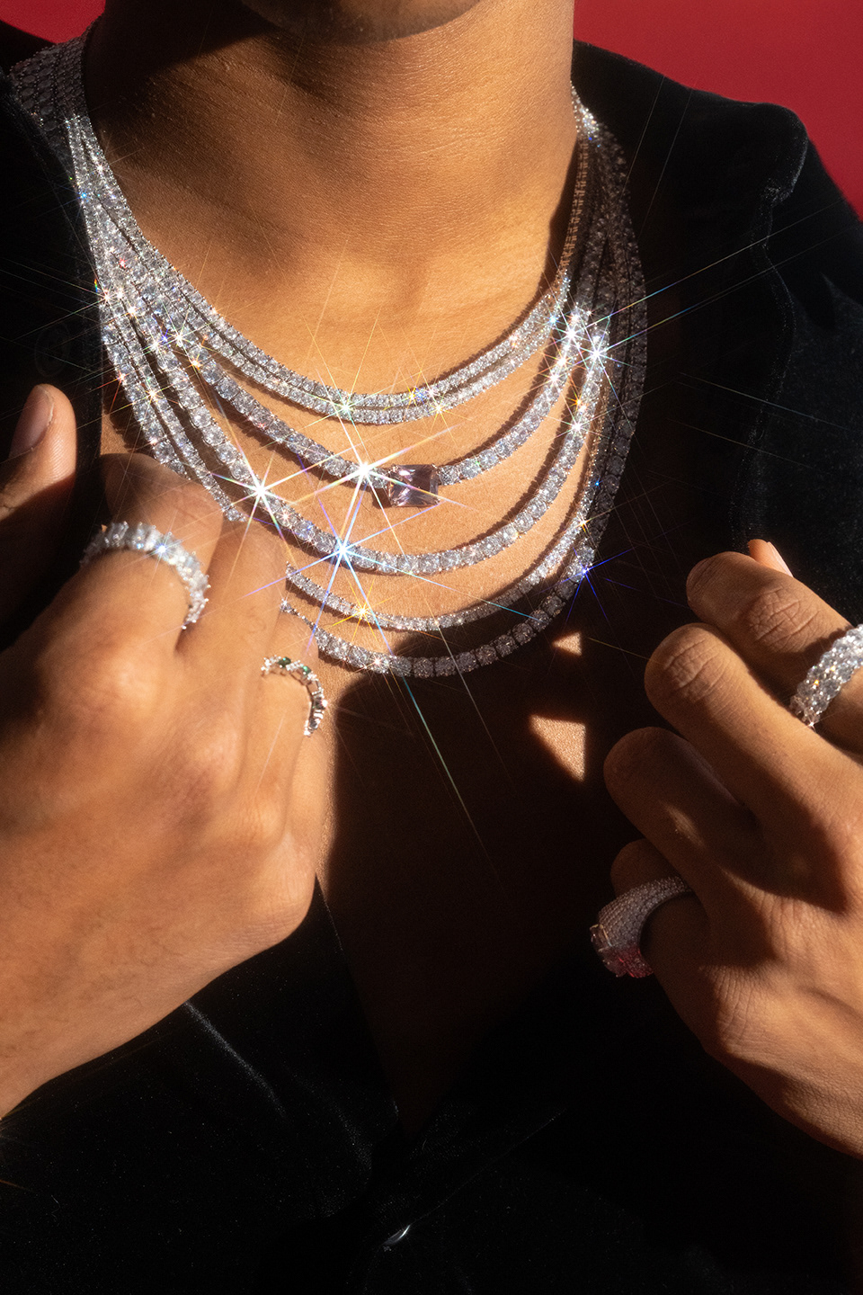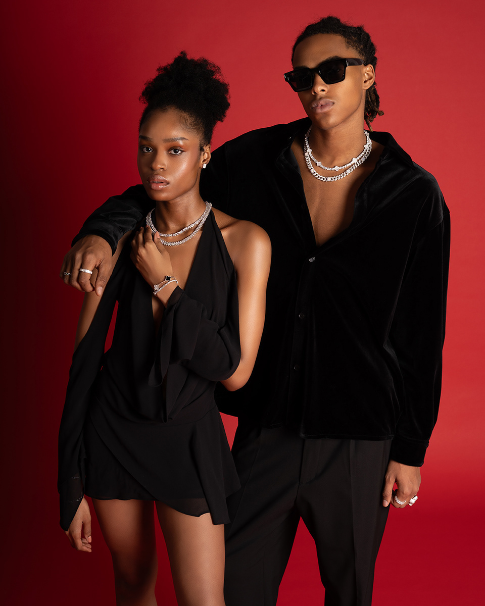 Campaign photography created for 6ixice, showcasing the brand’s modern luxury identity. The visuals highlight bold styling, clean lighting, and a confident attitude, capturing the refined yet contemporary spirit of the jewelry. Responsible for art direction, lighting, photography, and retouching.