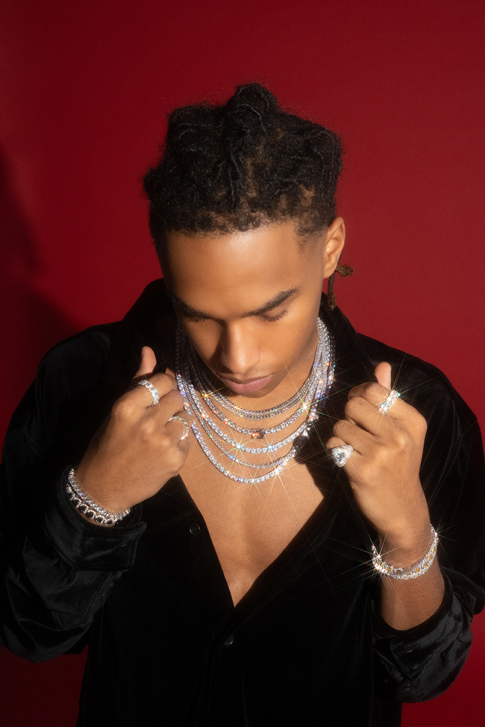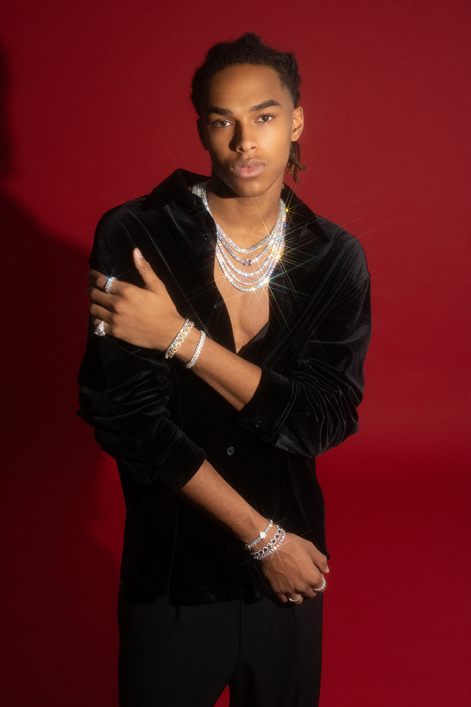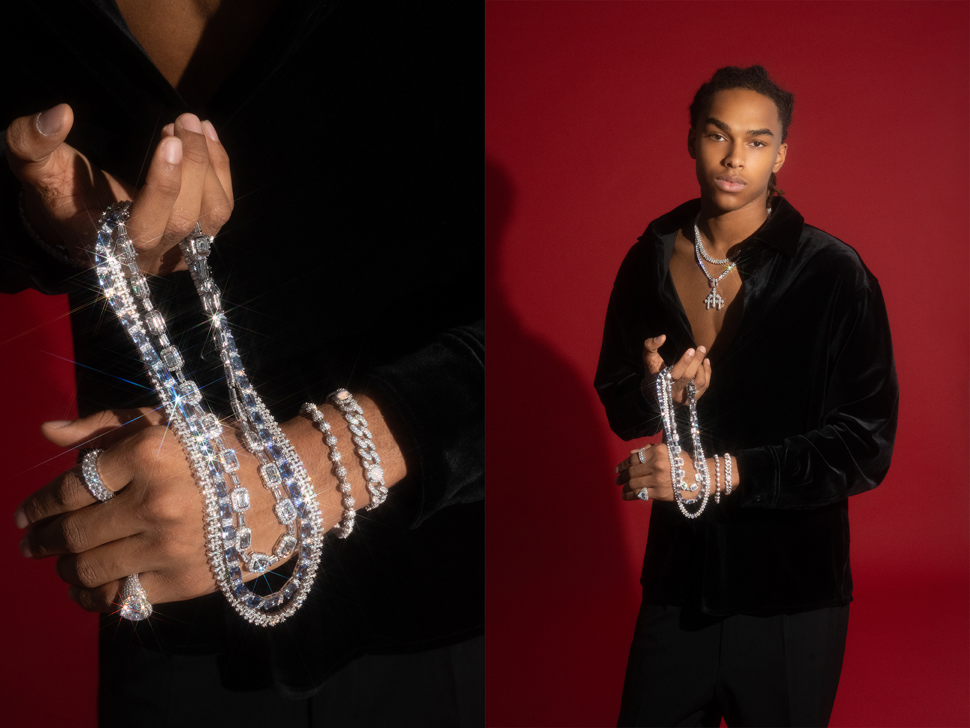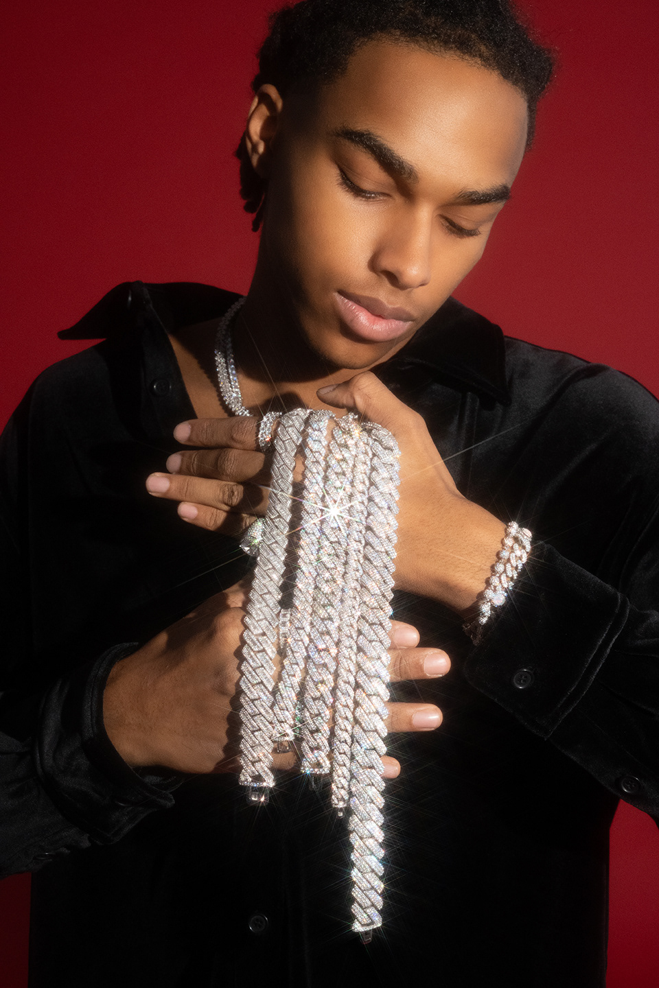 Campaign photography created for 6ixice, showcasing the brand’s modern luxury identity. The visuals highlight bold styling, clean lighting, and a confident attitude, capturing the refined yet contemporary spirit of the jewelry. Responsible for art direction, lighting, photography, and retouching.